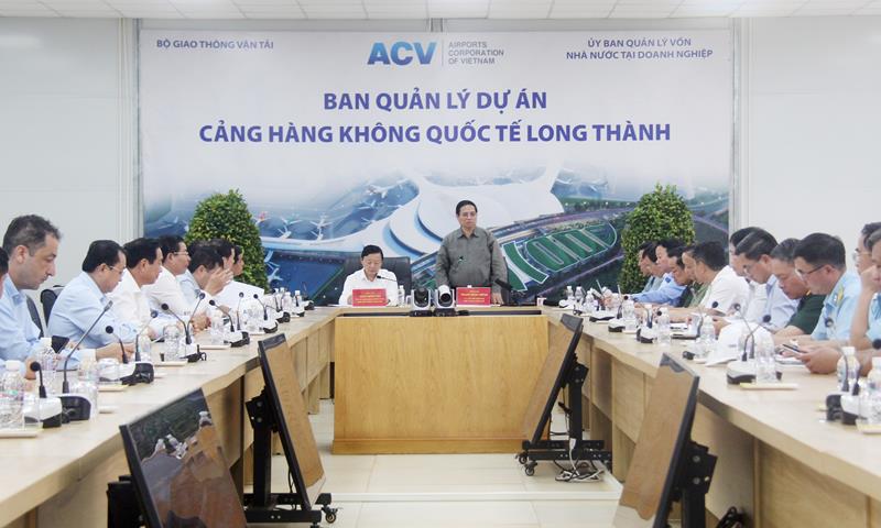 Thủ tướng Chính phủ Phạm Minh Chính phát biểu chỉ đạo tại buổi làm việc với các bộ, ngành, địa phương và đơn vị liên quan về tiến độ dự án Sân bay Long Thành