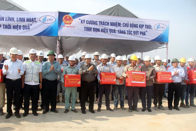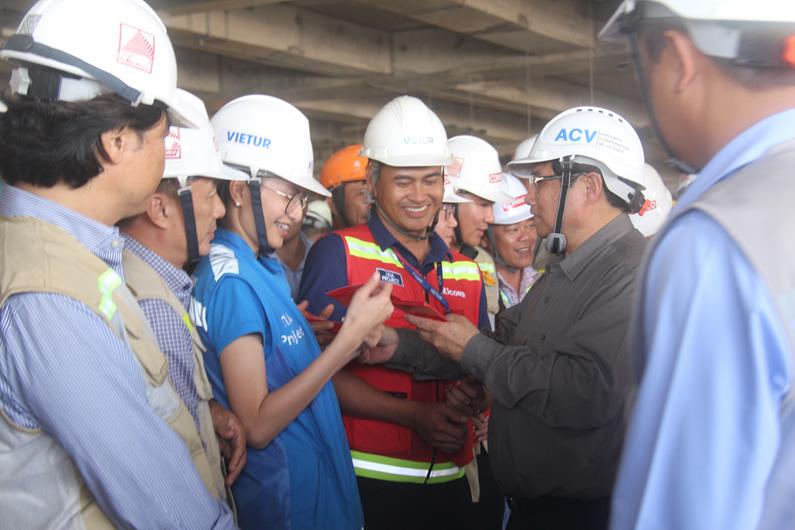 Thủ tướng Chính phủ Phạm Minh Chính lì xì tết cho công nhân, người lao động đang thi công tại dự án Sân bay Long Thành