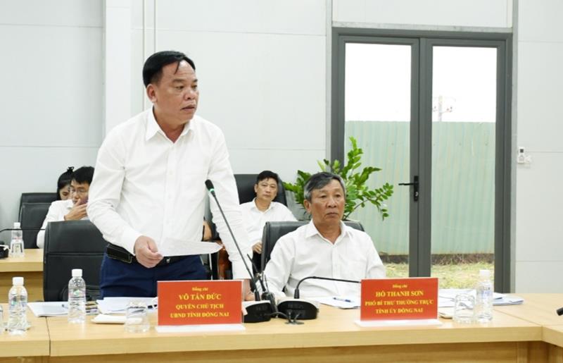 Quyền Chủ tịch UBND tỉnh Võ Tấn Đức báo cáo về công tác giải phóng mặt bằng 2 tuyến đường kết nối với sân bay