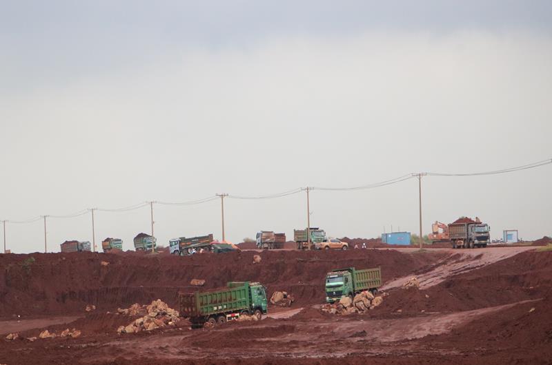 Đối với gói thầu san nền, thoát nước, sau gần 10 tháng triển khai, các nhà thầu đã đạt tổng khối lượng thi công hơn 26,7 triệu m3 đất cả đào và đắp. Để đảm bảo tiến độ các nhà thầu thi công đã huy động khoảng 1,8 ngàn đầu xe, máy móc thiết bị, đồng thời thực hiện thi công làm 3 ca, 4 kíp. Thời gian qua, do ảnh hưởng thời tiết mưa nhiều nên tiến độ thi công gói thầu bị ảnh hưởng. Chính vì vậy, thời gian tới, khi bước vào mùa khô, các nhà thầu đặt mục tiêu đẩy nhanh tiến độ để bù đắp. Cụ thể, liên danh các nhà thầu đặt mục tiêu thi công đào, đắp đạt 1 triệu m3 đất mỗi tháng để đảm bảo hoàn thành gói thầu theo cam kết.