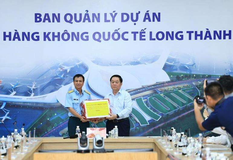 Đồng chí Nguyễn Trọng Nghĩa tặng quà cho cán bộ, kỹ sư, công nhân thực hiện dự án Cảng hàng không quốc tế Long Thành