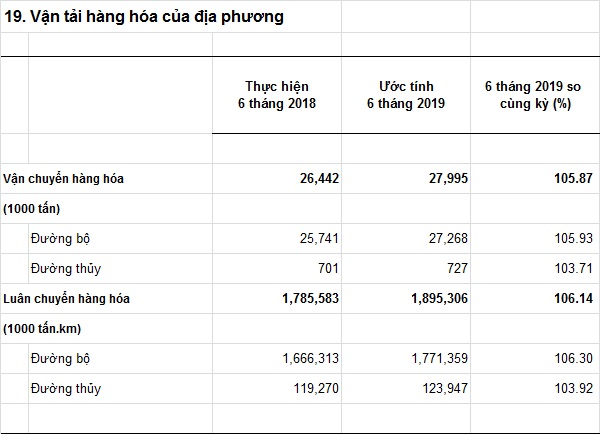 Vận tải hàng hóa của địa phương 06 tháng năm 2019
