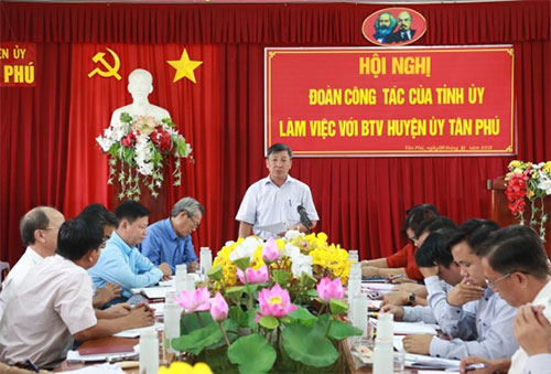Phó bí thư thường trực Tỉnh ủy đề nghị, những tháng còn lại của năm 2019, huyện Tân Phú phải nỗ lực nhiều hơn nữa để hoàn thành các chỉ tiêu đề ra theo Nghị quyết Đại hội Đảng bộ huyện nhiệm kỳ 2015-2020 và các chỉ tiêu được tỉnh giao trong năm 2019. Theo đó, cần có những giải pháp tạo sự chuyển biến trong những chỉ tiêu còn đạt thấp hoặc có khả năng không đạt; tập trung lãnh đạo, chỉ đạo khắc phục những hạn chế, thiếu sót đã được chỉ ra sau kiểm điểm theo tinh thần của Nghị quyết Trung ương 4. Đặc biệt, Đảng bộ huyện cần tập trung làm tốt công tác chuẩn bị cho Đại hội Đảng bộ huyện (nhiệm kỳ 2020-2025), trong đó chú trọng công tác xây dựng Văn kiện Đại hội, xác định những nhiệm vụ và giải pháp đột phá trong phát triển nông nghiệp.
