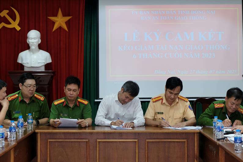 (CTTĐT-Đồng Nai) - Ban An toàn giao thông (ATGT) tỉnh vừa tổ chức ký cam kết thực hiện các giải pháp bảo đảm trật tự, ATGT nhằm kéo giảm tai nạn giao thông trong 6 tháng cuối năm 2023.