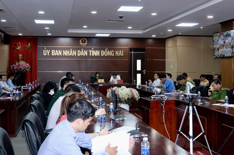 Tại điểm cầu Đồng Nai, Phó Chủ tịch UBND tỉnh Nguyễn Thị Hoàng cùng đại diện lãnh đạo các sở, ban, ngành tham dự hội nghị.