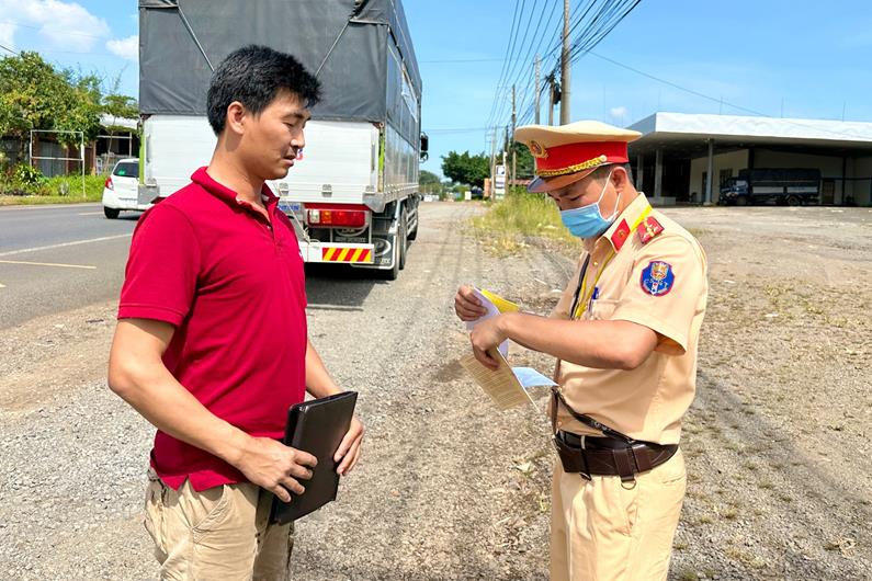 Phòng Cảnh sát giao thông Công an tỉnh kiểm tra các xe ô tô kinh doanh vận tải hoạt động trên tuyến quốc lộ 20 qua địa phận Đồng Nai