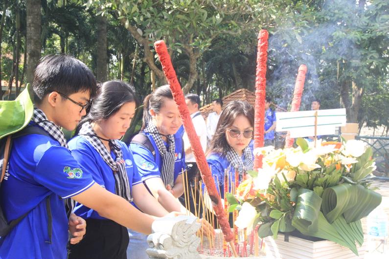 Đoàn viên, thanh niên dâng hương tại Bia lưu niệm Căn cứ Tỉnh ủy Biên Hòa