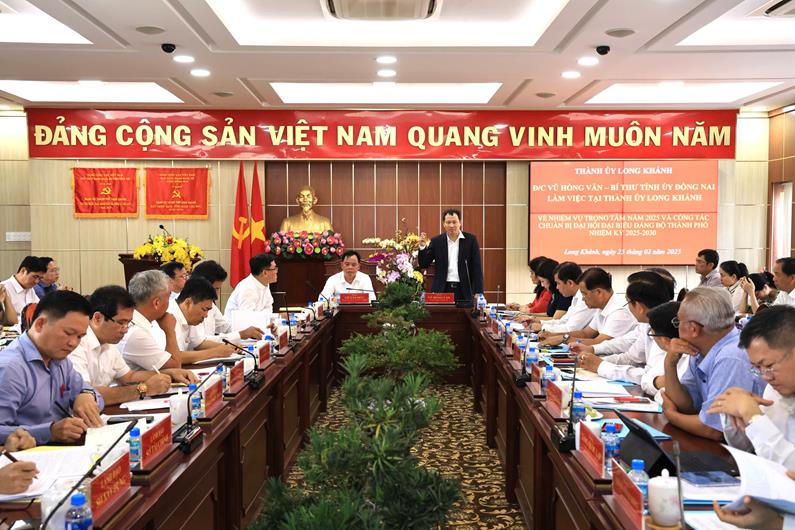 Kết luận buổi làm việc, Bí thư Tỉnh ủy Vũ Hồng Văn ghi nhận và đánh giá cao sự lãnh đạo, chỉ đạo của Ban thường vụ Thành ủy Long Khánh trong thời gian qua đối với việc sắp xếp tổ chức bộ máy; chuẩn bị đại hội Đảng các cấp; phát triển kinh tế - xã hội.