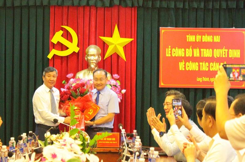 Phó Bí thư Thường trực Tỉnh ủy Hồ Thanh Sơn trao quyết định bổ nhiệm Phó Bí thư Thường trực Huyện ủy Long Thành cho đồng chí Huỳnh Minh Dũng