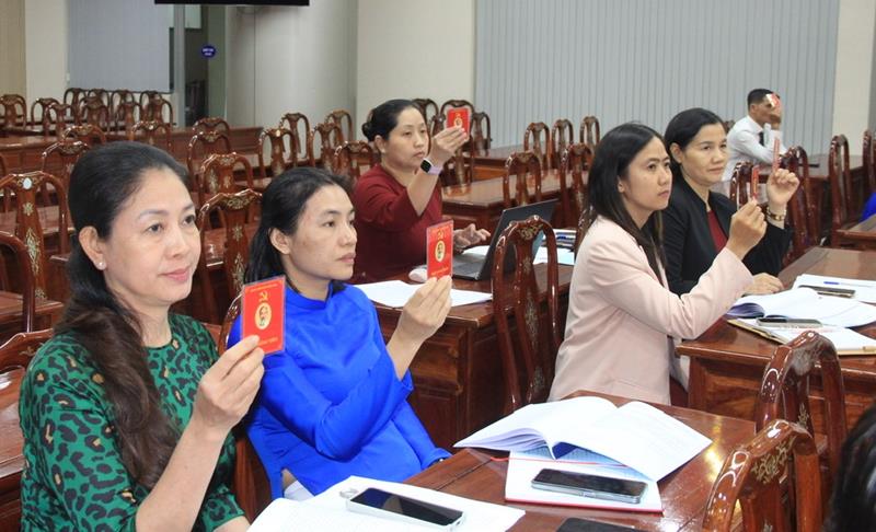 Các đại biểu biểu quyết các nội dung tại đại hội