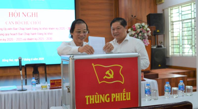 Các đại biểu bỏ phiếu bổ sung quy hoạch Ban Chấp hành Đảng bộ khối nhiệm kỳ 2020-2025 và 2025-2030.