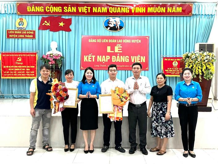 Đảng bộ Liên đoàn Lao động H.Long Thành tổ chức lễ kết nạp đảng viên mới là công nhân lao động trong các doanh nghiệp trên địa bàn huyện.