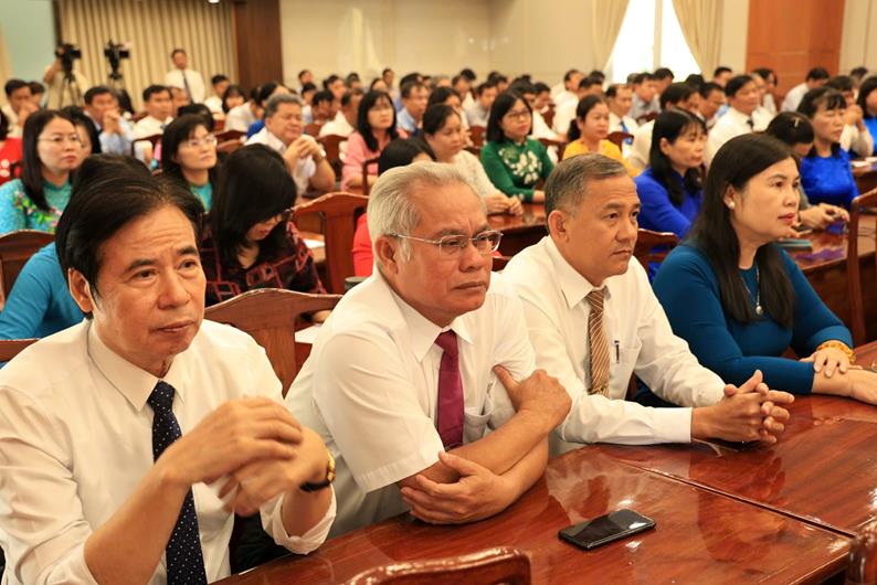Các đại biểu dự hội nghị của Tỉnh ủy về công bố các quyết định sắp xếp tổ chức bộ máy hệ thống chính trị tỉnh.