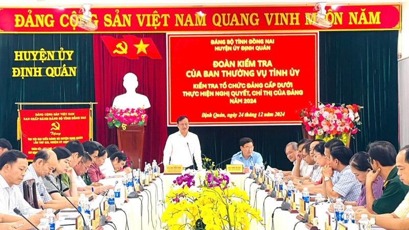 (CTT- Đồng Nai) – Ủy viên Ban Thường vụ Tỉnh ủy (TVTU), Trưởng Ban Dân vận Tỉnh ủy Cao Tiến Dũng, Trưởng đoàn vừa kiểm ra việc thực hiện nghị quyết năm 2024 tại Đảng bộ huyện Định Quán.