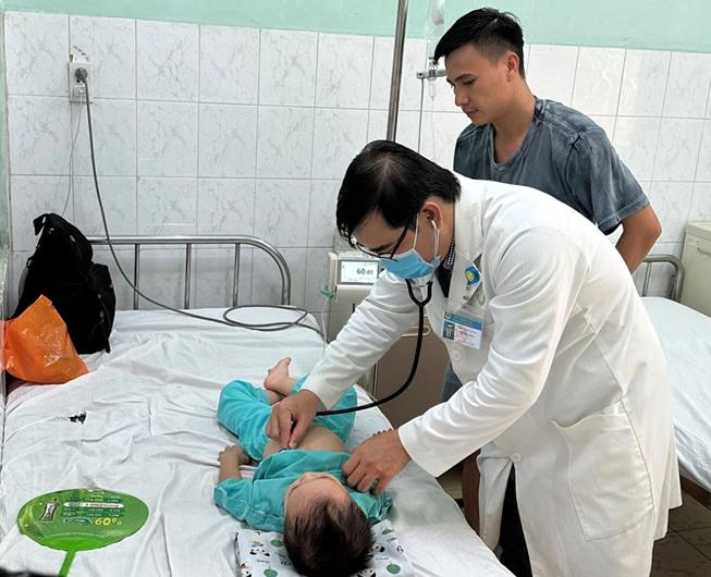 Bác sĩ khám bệnh cho bệnh nhi điều trị tại Bệnh viện Nhi đồng Đồng Nai