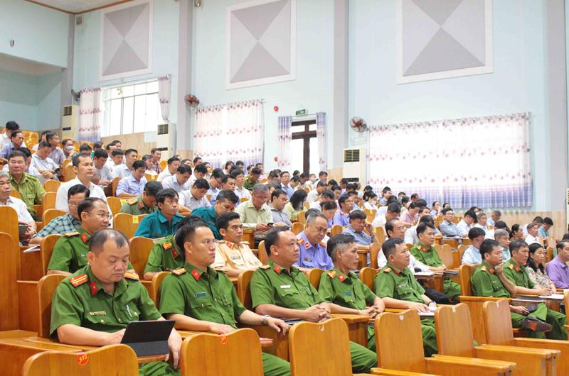 Đội ngũ cán bộ chủ chốt, bí thư chi bộ các ấp, khu phố tại huyện Nhơn Trạch nghe Phó Bí thư Tỉnh ủy, Trưởng Đoàn đại biểu Quốc hội tỉnh Quản Minh Cường nói chuyện chuyên đề về bảo vệ nền tảng tư tưởng của Đảng