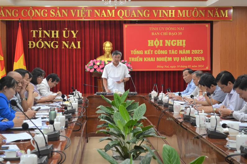 (CTT-Đồng Nai) - Chiều 10-1, Phó Bí thư Thường trực Tỉnh ủy, Trưởng Ban Chỉ đạo (BCĐ) 35 Tỉnh ủy, Hồ Thanh Sơn đã chủ trì hội nghị đánh giá kết quả hoạt động trong năm 2023 của BCĐ 35 Tỉnh ủy về tăng cường bảo vệ nền tảng tư tưởng của Đảng, đấu tranh phản bác các quan điểm sai trái thù địch trong tình mới và triển khai nhiệm vụ năm 2024.
