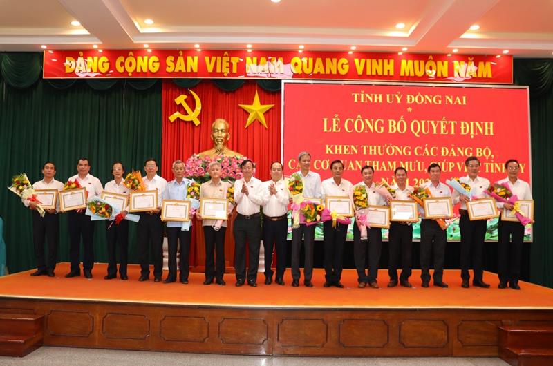 Đối với khen thưởng các Đảng bộ và đơn vị trực thuộc tỉnh, hội nghị đã thống nhất tặng cờ của Ban Chấp hành Đảng bộ tỉnh cho 3/16 đảng bộ trực thuộc tỉnh được đánh giá, xếp loại chất lượng hoàn thành xuất sắc nhiệm vụ năm 2022 đạt tiêu chuẩn hoàn thành xuất sắc nhiệm vụ tiêu biểu năm 2022, gồm: Đảng bộ Quân sự tỉnh, Đảng bộ Công an tỉnh và Đảng bộ thành phố Long Khánh; tặng bằng khen cho 2 cơ quan tham mưu, giúp việc của Tỉnh ủy là Ban Dân vận Tỉnh ủy và Ban Tuyên giáo Tỉnh ủy đã hoàn thành xuất sắc nhiệm vụ và tặng bằng khen 13 đảng bộ trực thuộc tỉnh được được đánh giá, xếp loại chất lượng hoàn thành tốt nhiệm vụ.