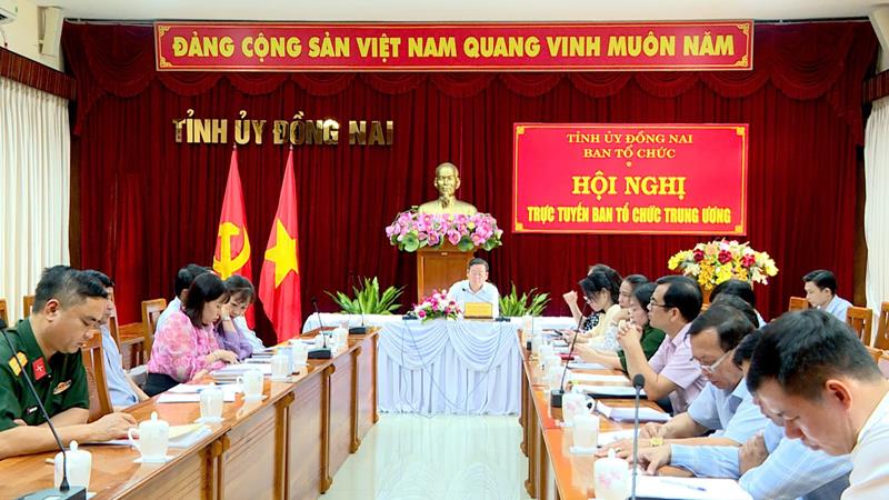 Tại điểm cầu tỉnh Đồng Nai, Ủy viên Ban Thường vụ Tỉnh ủy, Trưởng Ban Tổ chức Tỉnh ủy Đào Văn Phước chủ trì hội nghị.