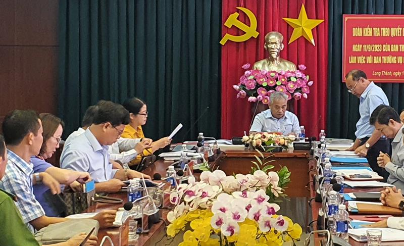(CTT-Đồng Nai)- Đoàn kiểm tra của Tỉnh ủy do Phó Trưởng Ban Nội chính Tỉnh ủy Lê Ngọc Minh làm trưởng đoàn vừa có buổi làm việc với Ban Thường vụ Huyện ủy Long Thành và Đảng ủy các xã: An Phước, Long Phước về kết quả thực hiện các chỉ thị của Bộ Chính trị về tăng cường sự lãnh đạo của Đảng đối với công tác đảm bảo an ninh trật tự (ANTT); phòng, chống tội phạm trong tình hình mới và chỉ thị của Ban TVTU về tăng cường sự lãnh đạo của Đảng đối với công tác tiếp nhận, giải quyết tin báo, tố giác tội phạm và kiến nghị khởi tố vụ án hình sự trên địa bàn tỉnh.