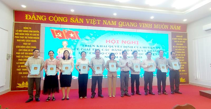 Theo đó, 4 đảng bộ khối trực thuộc Huyện ủy giải thể gồm: Đảng bộ khối Đảng; Đảng bộ khối mặt trận - đoàn thể; Đảng bộ khối Kinh tế và Đảng bộ khối văn hóa - xã hội.