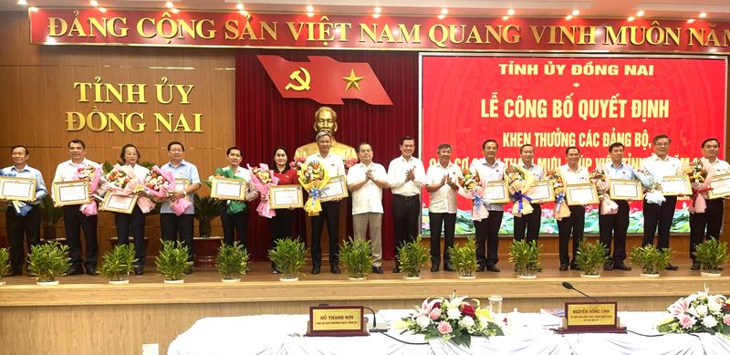 khen thưởng tặng cờ thi đua cho 3 đảng bộ đạt tiêu chuẩn “Hoàn thành xuất sắc nhiệm vụ tiêu biểu”, gồm: Đảng bộ Quân sự tỉnh và Đảng bộ Công an tỉnh; Đảng bộ huyện Xuân Lộc.