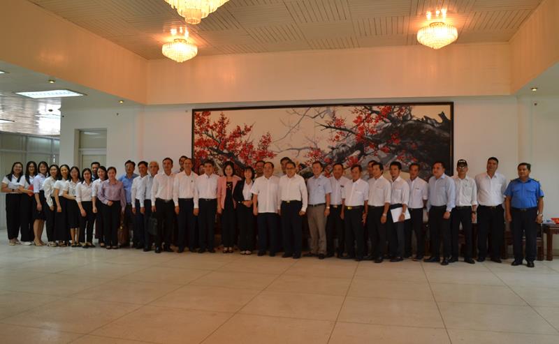 Lãnh đạo tỉnh, huyện chụp hình lưu niệm với Ban giám đốc người nước ngoài và đảng viên của Chi bộ 1.