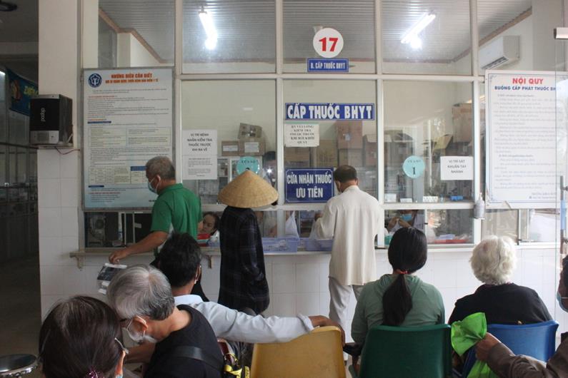 Người dân nhận thuốc BHYT sau khi khám bệnh tại Trung tâm Y tế huyện Vĩnh Cửu
