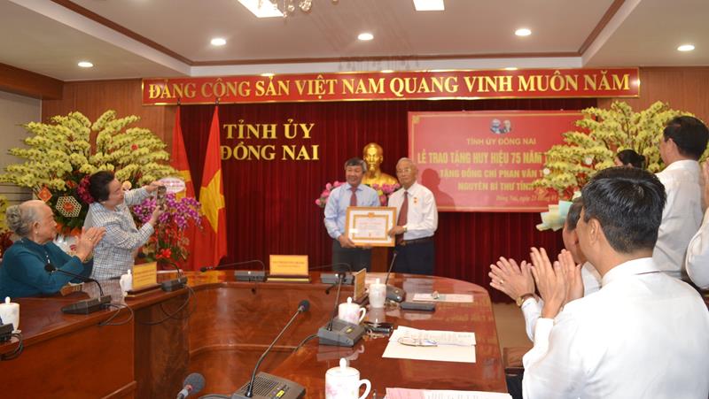 (CTT-Đồng Nai) - Nhân kỷ niệm 95 năm Ngày thành lập Đảng Cộng sản Việt Nam (3-2-1930 – 3-2-2025), sáng 23- 1, Thường trực Tỉnh ủy đã tổ chức Lễ trao tặng Huy hiệu 75 năm tuổi Đảng cho đồng chí Phan Văn Trang, nguyên Bí thư Tỉnh ủy.