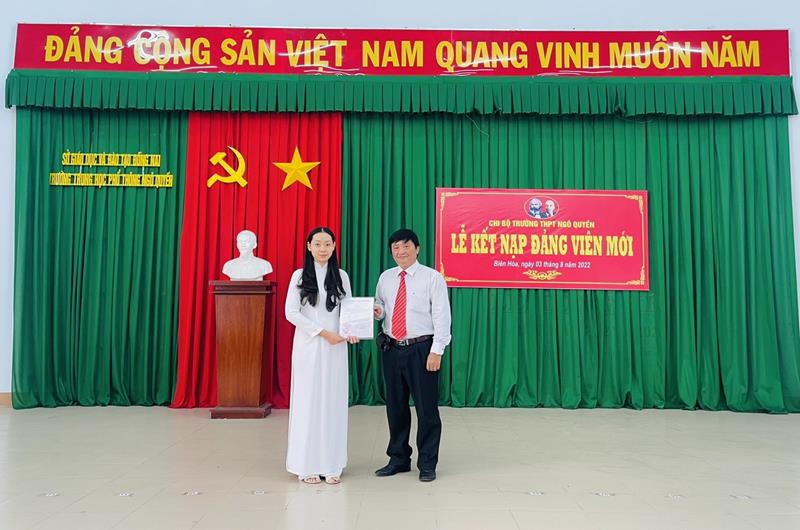 Kết nạp Đảng cho học sinh ở Trường THPT Ngô Quyền, TP.Biên Hòa, năm 2022.