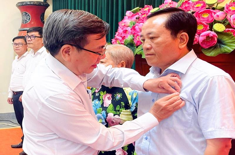 Phó Vụ trưởng Vụ Địa phương III, Ban Tổ chức Trung ương Đào Công Nhanh trao kỷ niệm chương Vì sự nghiệp công tác tổ chức xây dựng Đảng cho các cá nhân của Đồng Nai.
