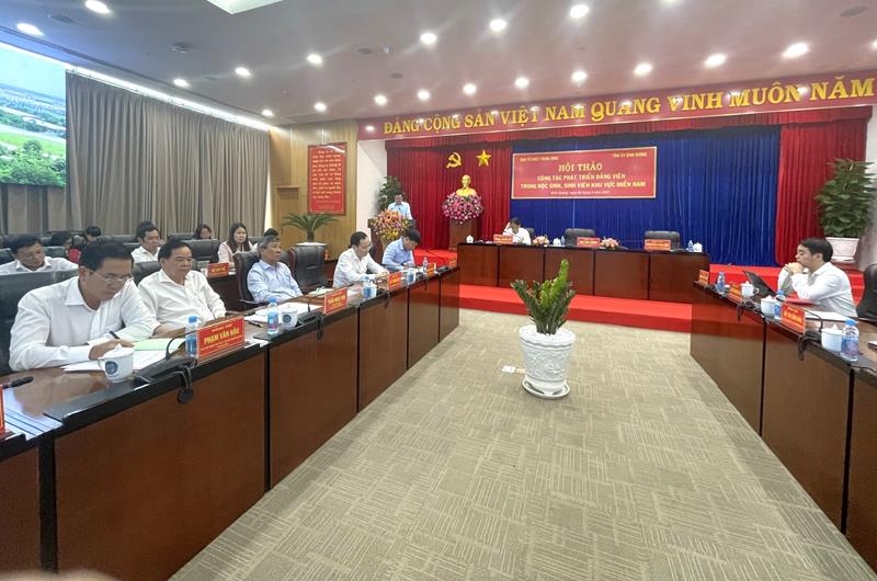 (CTT-Đồng Nai) - Vừa qua, tại tỉnh Bình Dương, Ban Tổ chức Trung ương đã tổ chức hội thảo chuyên đề về phát triển đảng viên trong học sinh, sinh viên (HS, SV) khu vực miền Nam. Các đồng chí: Mai Văn Chính, Ủy viên Trung ương Đảng, Phó trưởng Ban Thường trực Ban Tổ chức Trung ương; Nguyễn Văn Lợi, Ủy viên Trung ương Đảng, Bí thư Tỉnh ủy, Trưởng Đoàn đại biểu Quốc hội tỉnh Bình Dương và Phan Thăng An, Phó trưởng Ban Tổ chức Trung ương chủ trì hội thảo.