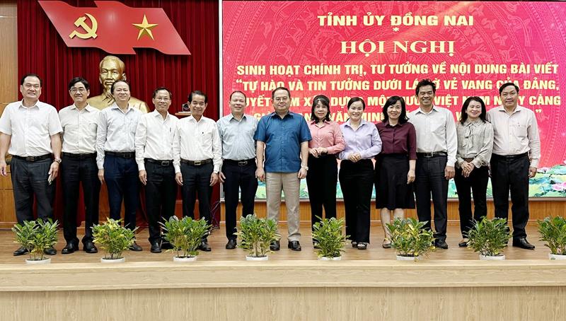 (CTT-Đồng Nai)- Chiều 14-3, Ban Thường vụ Tỉnh ủy đã tổ chức hội nghị thông tin lý luận về nội dung bài viết của đồng chí Tổng Bí thư Nguyễn Phú Trọng: “Tự hào và tin tưởng dưới lá cờ vẻ vang của Đảng, quyết tâm xây dựng một nước Việt Nam ngày càng giàu mạnh, văn minh, văn hiến và anh hùng”.