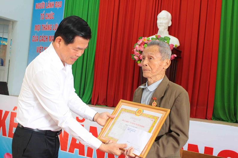 Bí thư Tỉnh ủy Nguyễn Hồng Lĩnh trao Huy hiệu 75 năm tuổi Đảng Trần Xuân Dương (sinh hoạt tại Chi bộ KP.Hương Phước, Phước Tân, Biên Hòa, Đồng Nai).