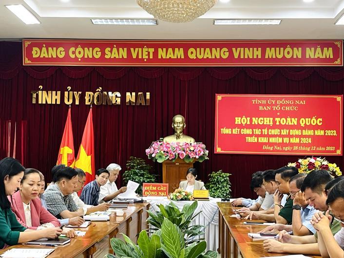 (CTT-Đồng Nai)- Sáng 28-12, Ban Tổ chức Trung ương tổ chức hội nghị toàn quốc tổng kết công tác tổ chức xây dựng Đảng năm 2023, triển khai nhiệm vụ năm 2024. Hội nghị được tổ chức bằng hình thức trực tiếp tại Hà Nội và trực tuyến tới 65 điểm cầu trên cả nước.