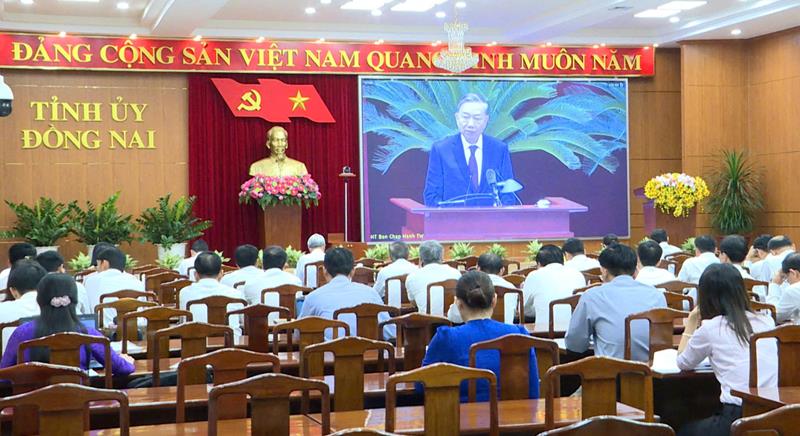 Tại điểm cầu Đồng Nai, dự hội nghị có Phó Bí thư thường trực Tỉnh ủy Hồ Thanh Sơn; Phó Bí thư Tỉnh ủy, Chủ tịch UBND tỉnh Võ Tấn Đức; Ủy viên Ban Thường vụ Tỉnh ủy, Chủ tịch HĐND tỉnh Thái Bảo; Ủy viên Ban Thường vụ Tỉnh ủy, Chủ tịch Ủy ban MTTQ tỉnh Cao Văn Quang; các đồng chí Ủy viên Ban Thường vụ Tỉnh ủy và lãnh đạo các đơn vị, địa phương trong tỉnh.