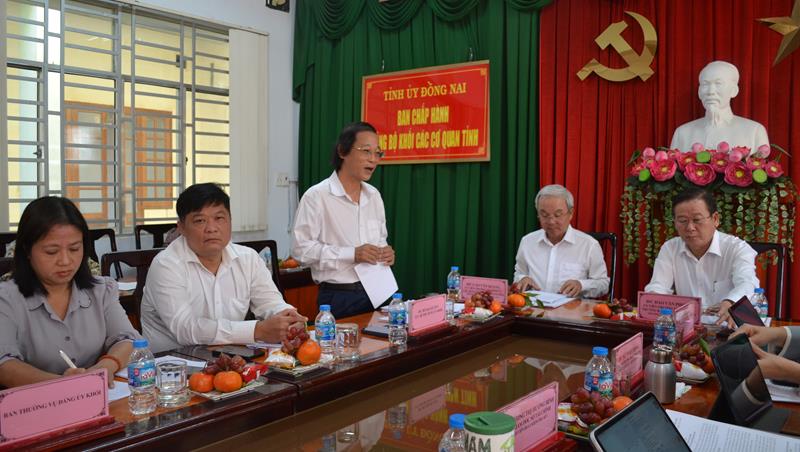 Đoàn đã chia sẻ những tâm tư của cán bộ, công chức Đảng ủy Khối các cơ quan tỉnh trước việc sắp xếp tổ chức bộ máy. Những nhiệm vụ Đảng ủy khối đã đề ra trong thời gian tới, cần tiếp tục tiến hành thực hiện đến khi nào có quyết định chính thức kết thúc hoạt động của Đảng ủy khối.
