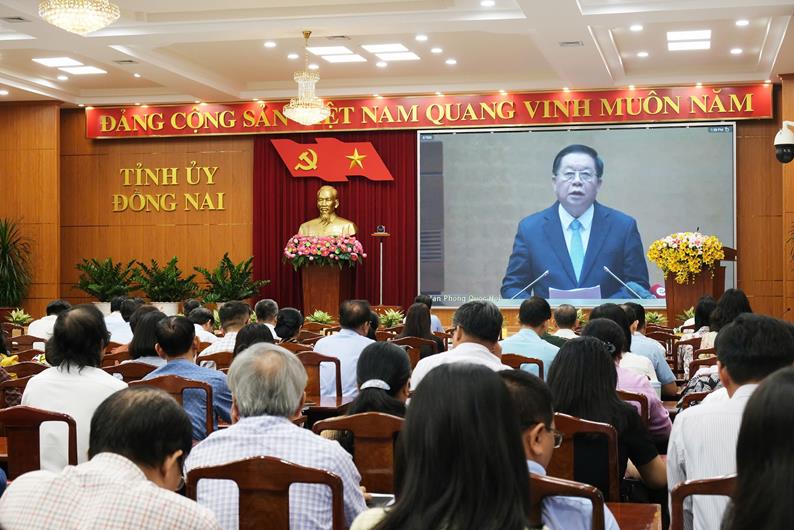 Các đại biểu tỉnh Đồng Nai dự hội nghị quán triệt toàn quốc về thực hiện Nghị quyết 18-NQ/TW do Bộ Chính trị, Ban Bí thư tổ chức theo hình thức trực tiếp và trực tuyến