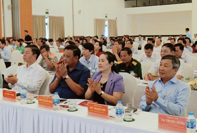 Phó Bí thư thường trực Tỉnh ủy Hồ Thanh Sơn (ngoài cùng bên phải) dự hội nghị.