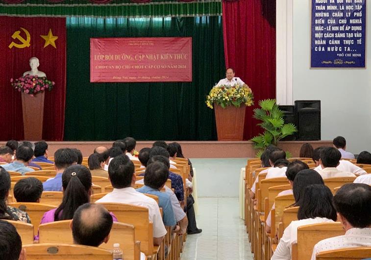 (CTT-Đồng Nai) - Đồng chí Phó Bí thư Tỉnh ủy, Trưởng Đoàn đại biểu Quốc hội tỉnh Quản Minh Cường vừa có buổi nói chuyện chuyên đề về kỹ năng xử lý tình huống tại địa bàn cơ sở đối với cán bộ chủ chốt cấp cơ sở tham gia lớp bồi dưỡng, cập nhật kiến thức tại Trường Chính trị tỉnh.