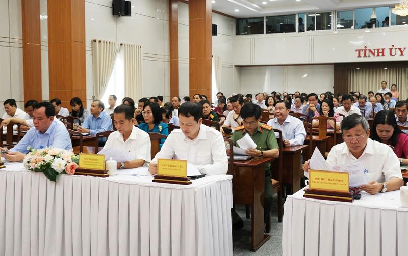 Hội nghị được thực hiện bằng hình thức trực tiếp và trực tuyến từ Hội trường Tỉnh ủy đến 13 điểm cầu trong toàn tỉnh.