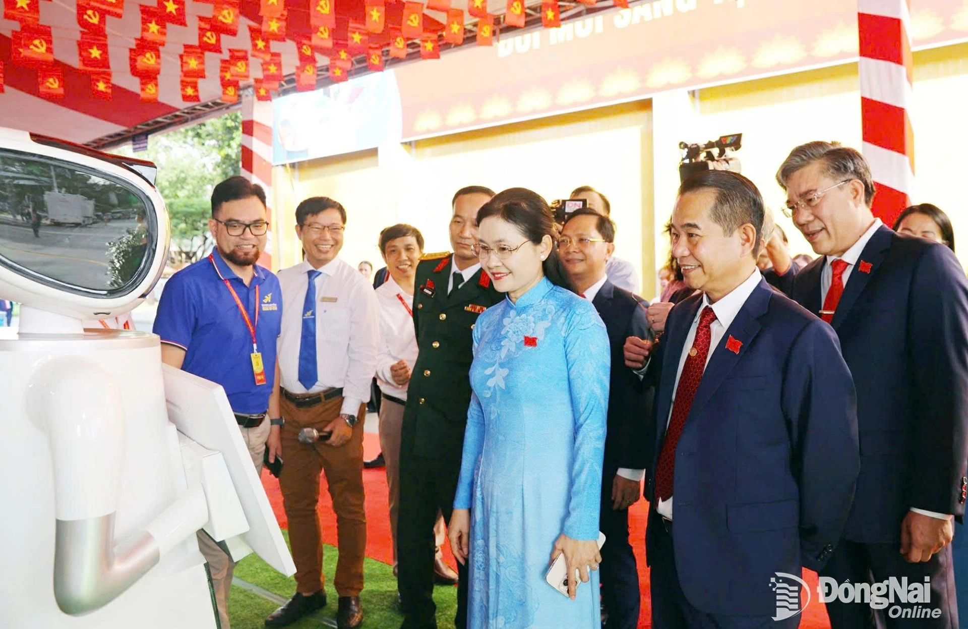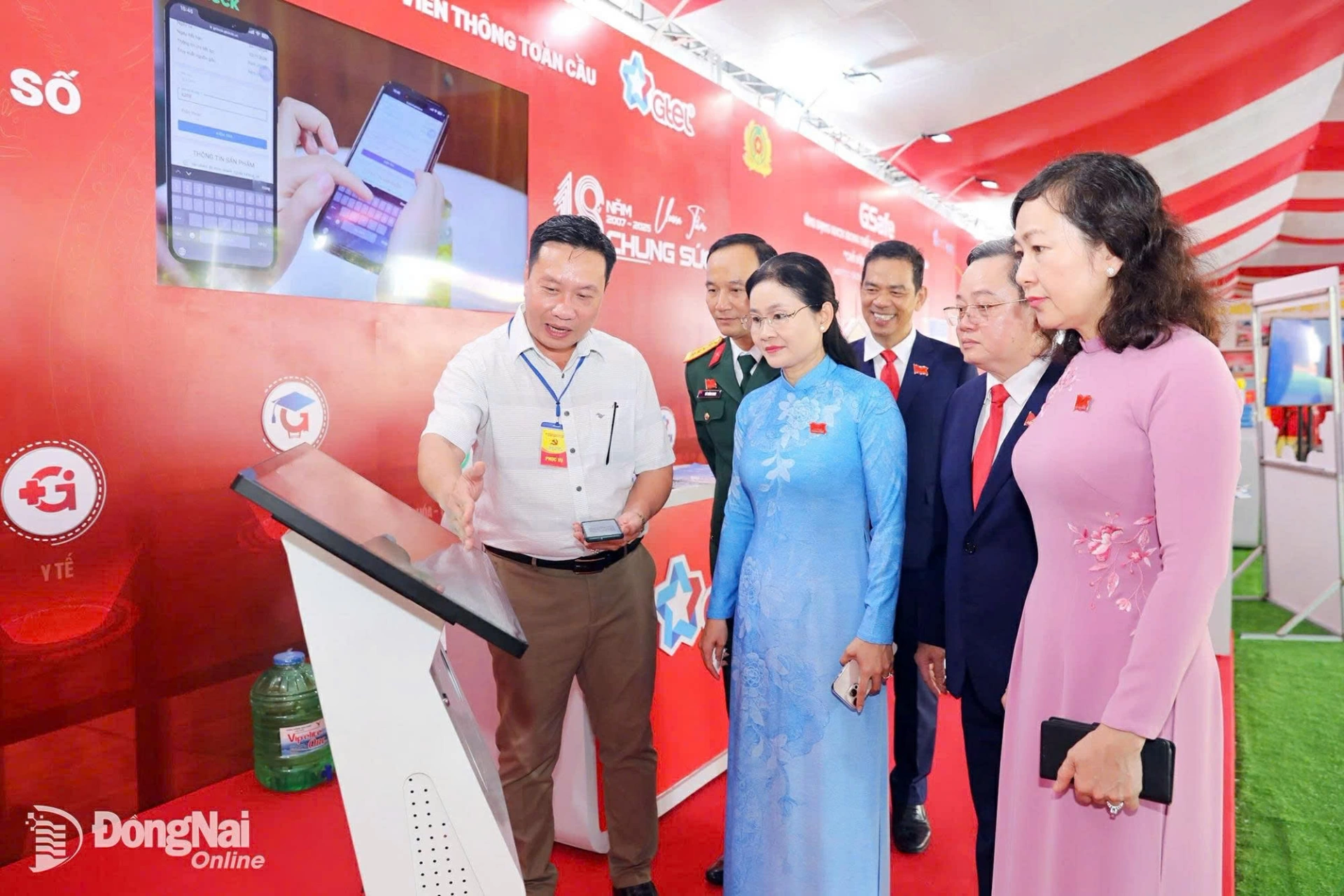 | Lãnh đạo tỉnh Đồng Nai tham quan gian hàng số của một tập đoàn viễn thông tại Đồng Nai. Ảnh: Huy Anh |