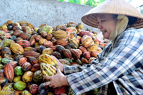 Sơ chế ca cao tại Công ty TNHH ca cao Trọng Đức, xã Phú Hòa, huyện Định Quán.