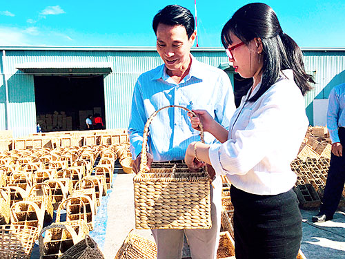 Đoàn thẩm định nông thôn mới Trung ương thăm một cơ sở sản xuất mây tre trong chuyến thẩm định tại huyện Định Quán.