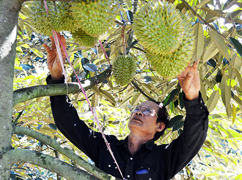 Là người đã gắn bó với cây sầu riêng hàng chục năm qua, thế nhưng hơn 2 năm trở lại đây, ông Ðinh Văn Mong, ấp Cam Tiên, xã Nhân Nghĩa mới làm giàu được với loại cây trồng giá trị cao này. Gia đình ông Mong có 7 ha vườn chuyên trồng sầu riêng. Trước đây, do chủ yếu trồng các loại sầu riêng bản địa nên năng suất rất thấp, chỉ khoảng 10 tấn/ha. Ngoài ra, do chất lượng sản phẩm không cao cộng với thị trường tiêu thụ thất thường nên nguồn thu từ vườn sầu riêng cũng thấp và không ổn định.