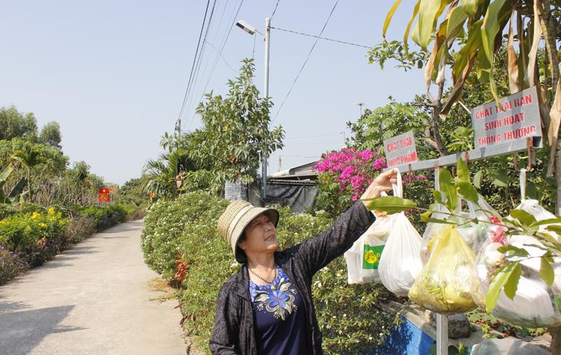 Người dân tại Khu dân cư kiểu mẫu tại xã Bình Lợi, huyện Vĩnh Cửu thực hiện phân loại rác tại nguồn