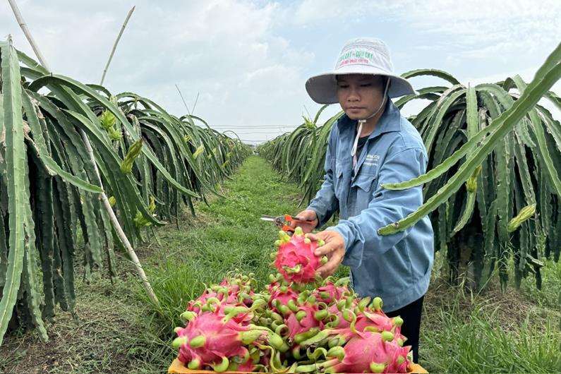 Mô hình trồng thanh long ruột đỏ theo cánh đồng mẫu lớn tại xã Xuân Phú, huyện Xuân Lộc