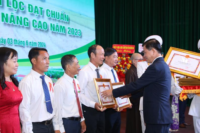 Phó Thủ tướng Chính phủ Trần Lưu Quang và Bí thư Tỉnh ủy Nguyễn Hồng Lĩnh trao quyết định và khen thưởng của Thủ tướng Chính phủ cho huyện Xuân Lộc đạt chuẩn nông thôn mới nâng cao năm 2023.