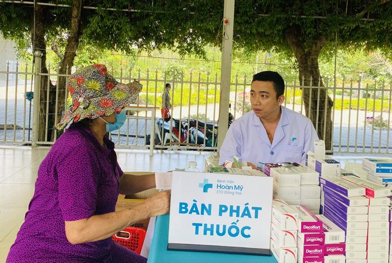 Người dân đã được các bác sĩ của Bệnh viện Hoàn Mỹ ITO Đồng Nai khám tầm soát các bệnh: tiểu đường, tăng huyết áp, đo điện tim, siêu âm tuyến giáp, khám trĩ, khám tai mũi họng và cấp phát thuốc miễn phí.