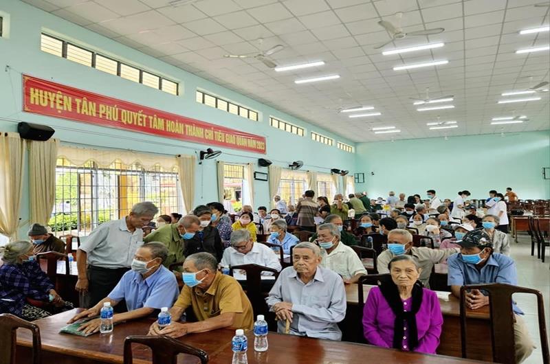 (CTT- Đồng Nai) Vừa qua, tại H.Tân Phú, Trường Cao đẳng Y tế Đồng Nai phối hợp với Hội Chữ thập đỏ TP.Biên Hòa và các mạnh thường quân tổ chức khám bệnh, phát thuốc, tặng quà cho 200 người là cựu thanh niên xung phong, hội viên Hội Chiến sĩ cách mạng bị địch bắt tù đày, gia đình chính sách, người có hoàn cảnh khó khăn trên địa bàn huyện.